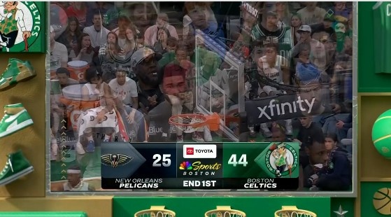 4月11日讯 NBA常规赛,凯尔特人首节44-25领先鹈鹕。